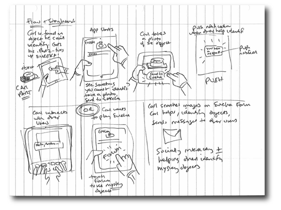 So, I designed EUREKA, riffing off of the old Google Goggles idea and added a much simpler interface including a big globe of thumbnails composed of other kids’ searches to swipe, tap, and learn more.